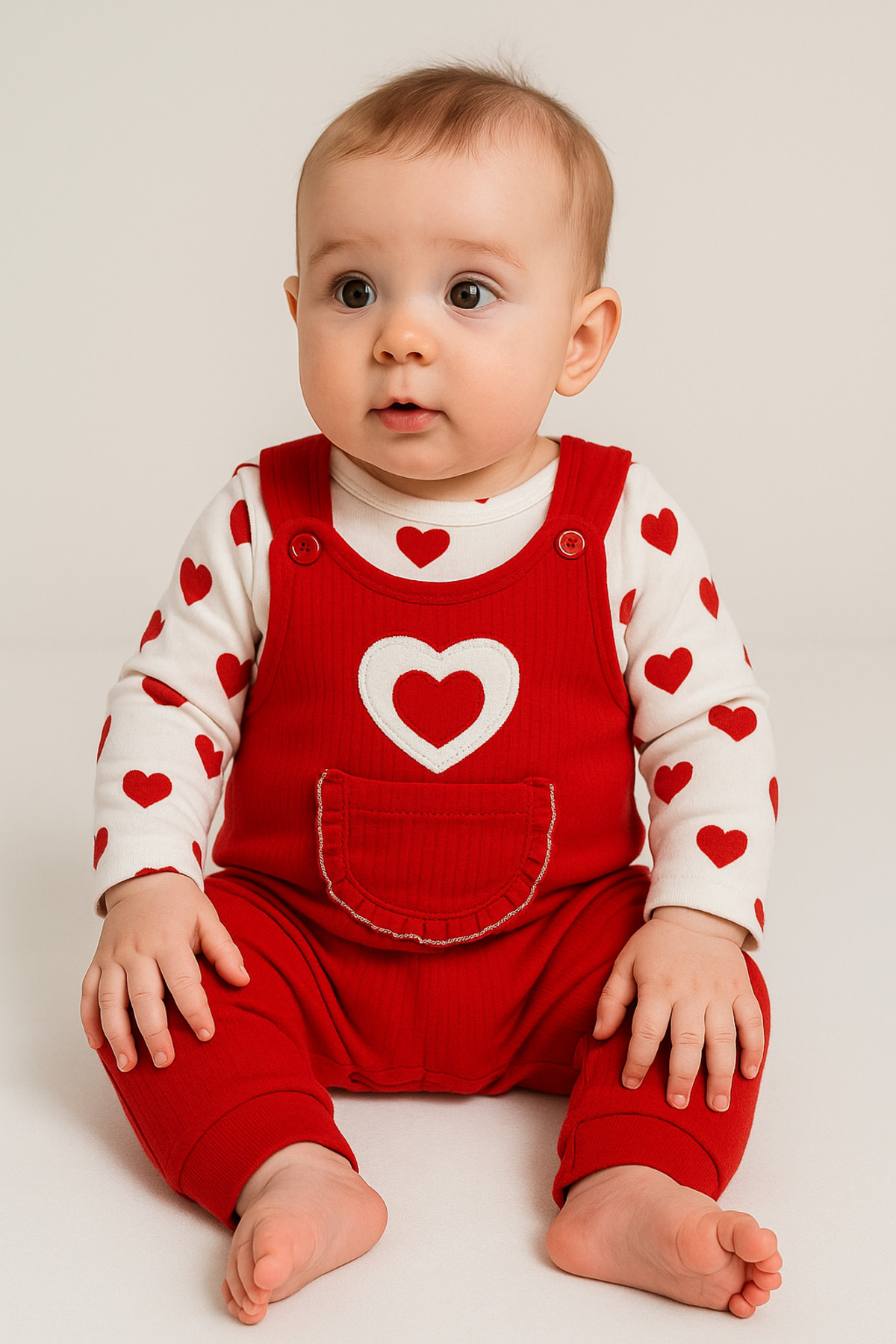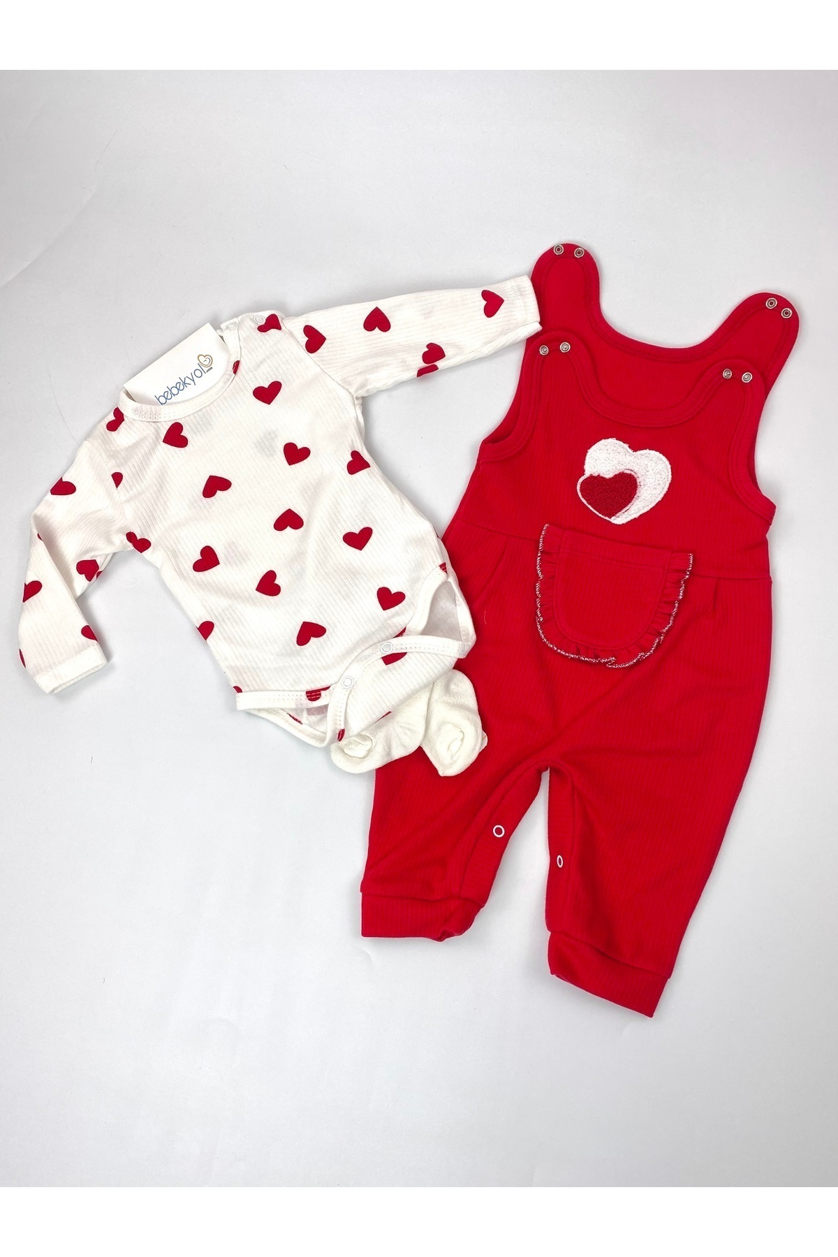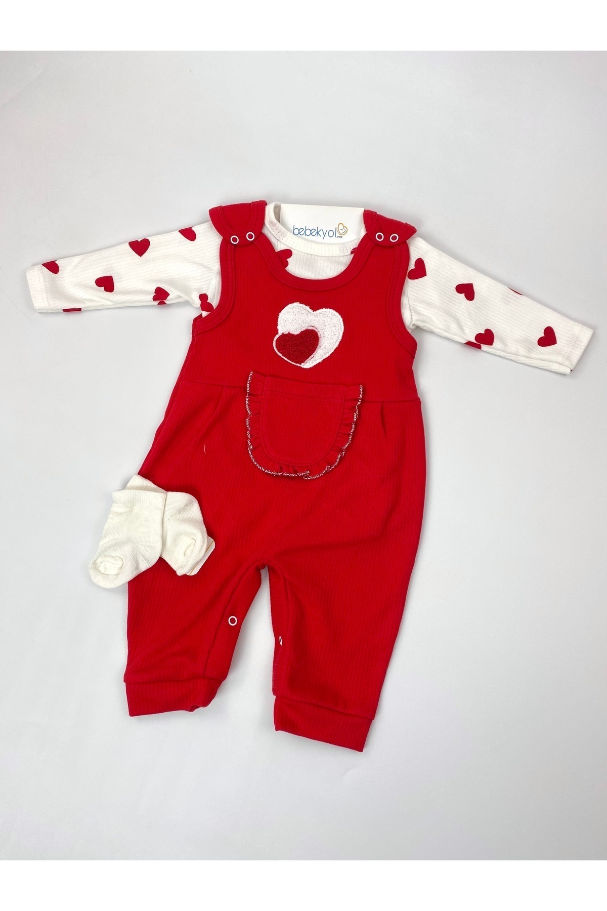 - Sevimli kalpli tasarımı ile kız bebeklerinize şıklığı ve rahatlığı bir arada getiren bu tulum, ev içindeki konforlu anlarınız için idealdir.