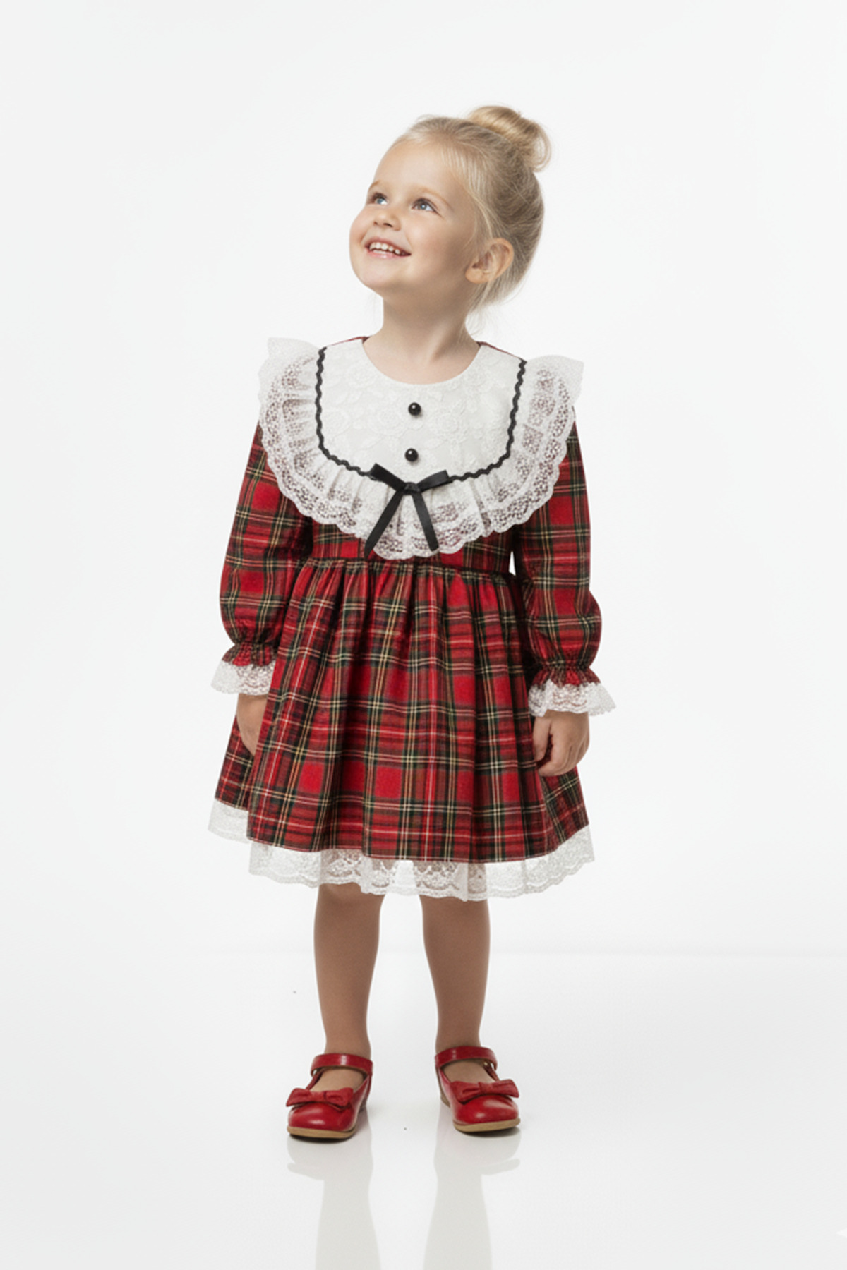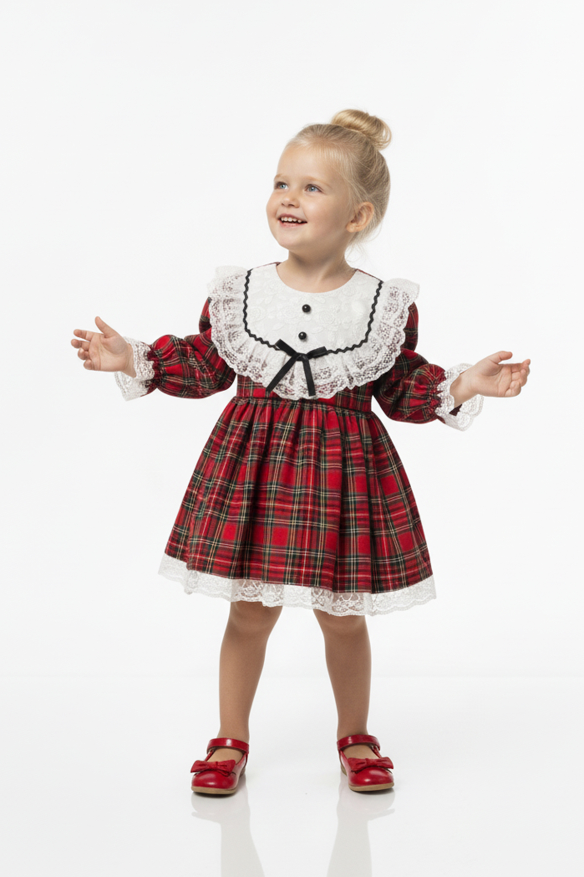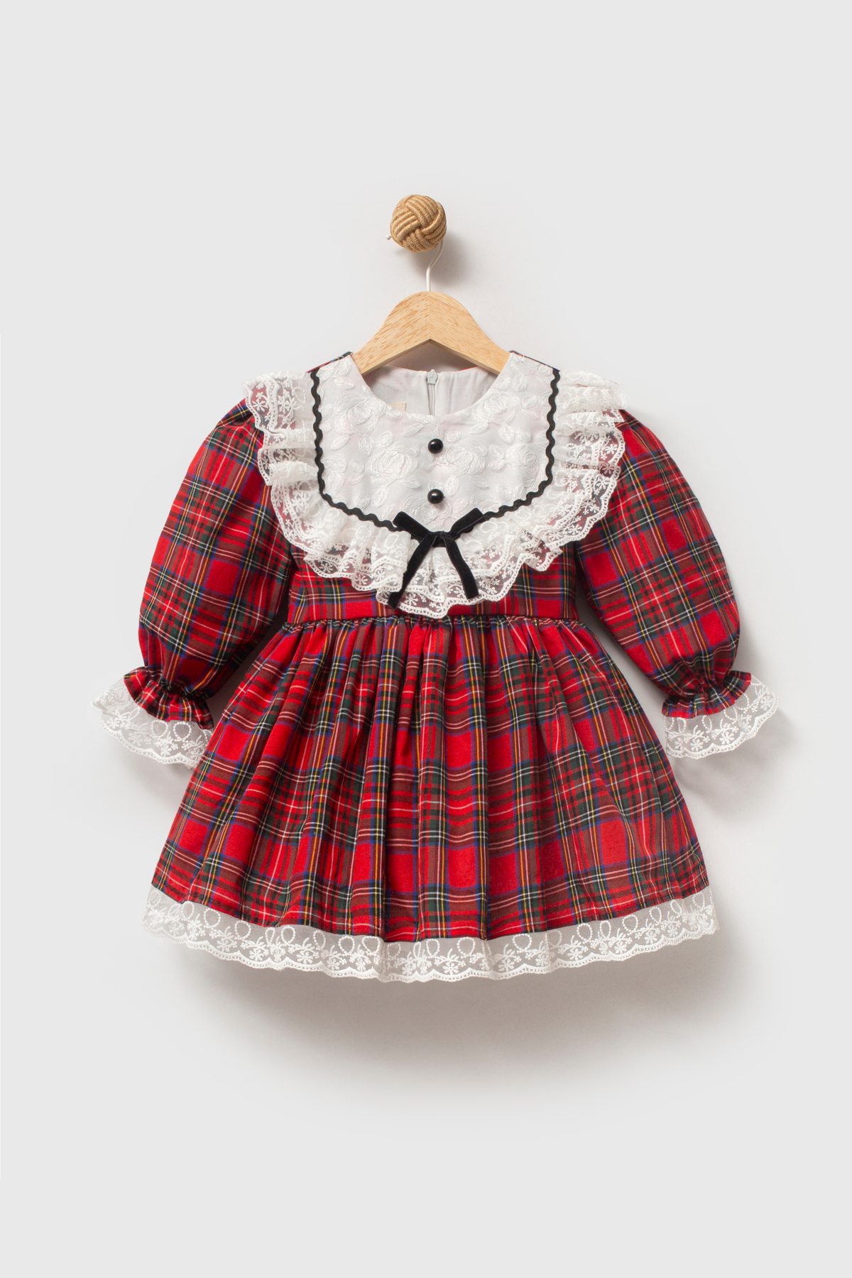 Mevsimlik Uzun Kollu Dantel Detaylı Kız Çocuk Elbisesi: Küçük prensesinizin özel günlerde zarafetini ve şıklığını ön plana çıkaracak bu elbise, önünde bulunan fiyonk detayı ve dantel işlemeleriyle tasarlanmıştır.