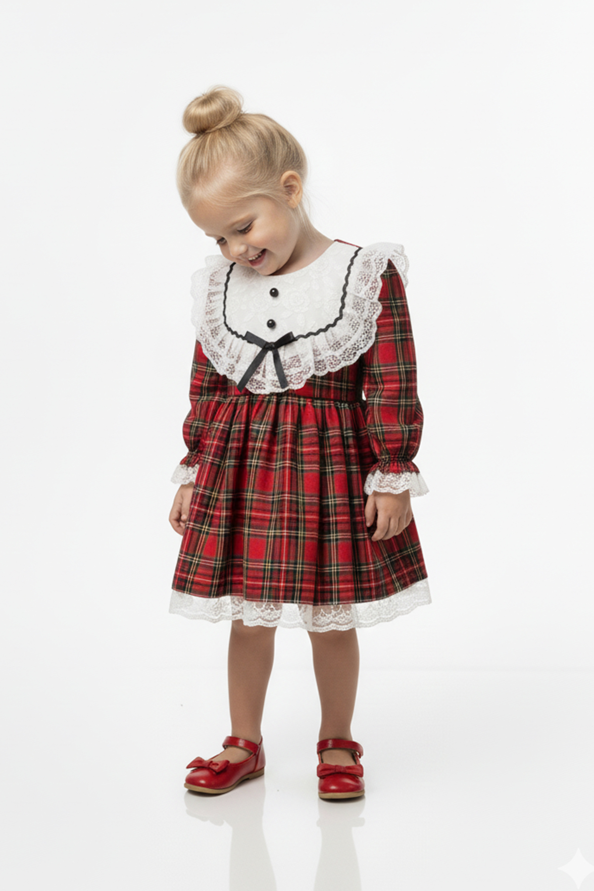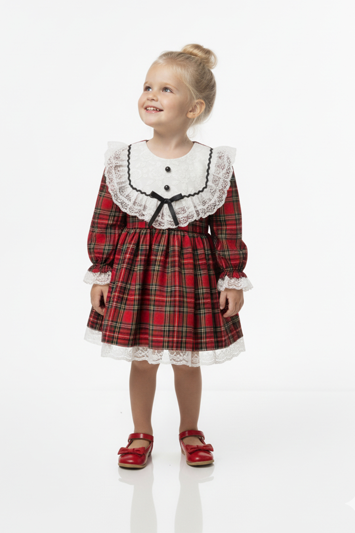 Özellikler: Dantel Detaylar: Elbisenin ön kısmında ve kollarda bulunan dantel detaylar, zarafet ve incelik katarken, küçük prensesinizin görünümünü daha etkileyici hale getirir.