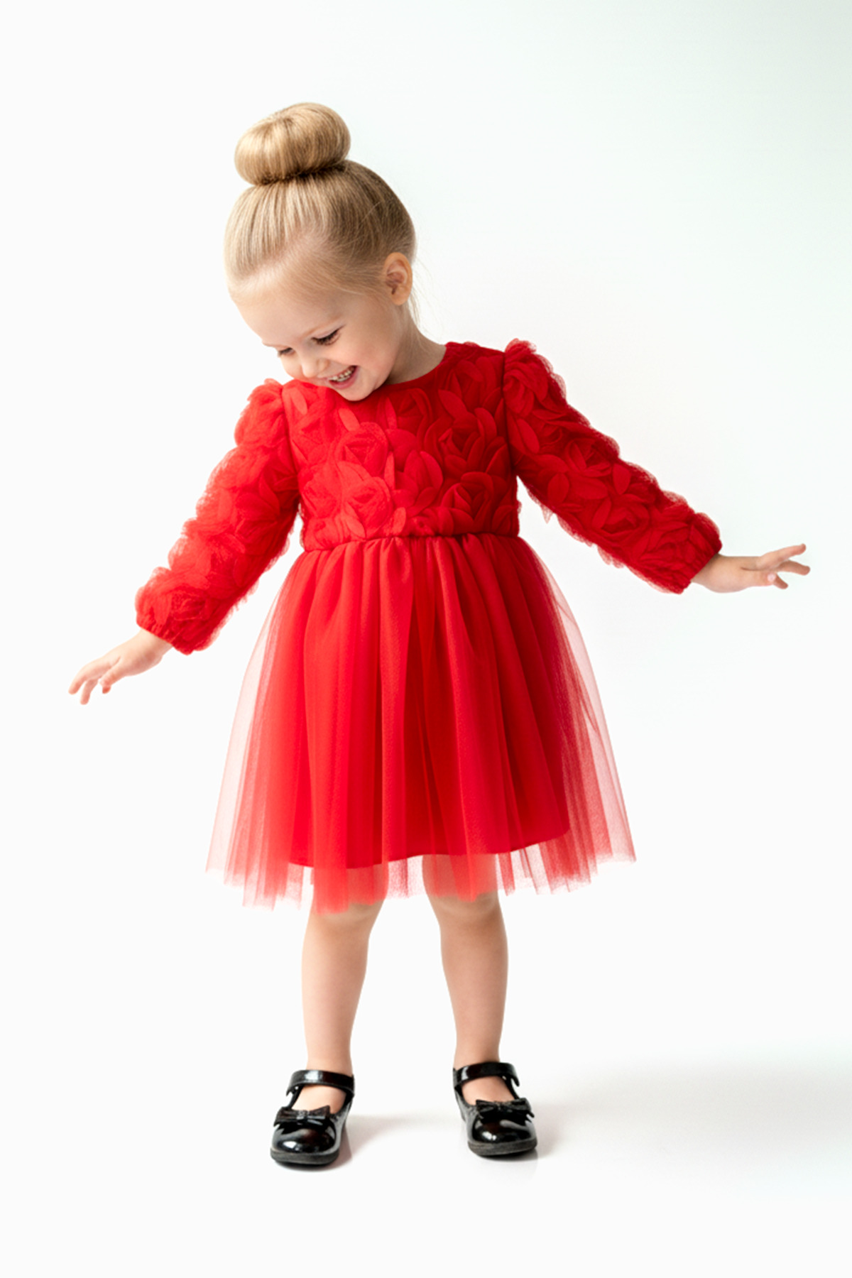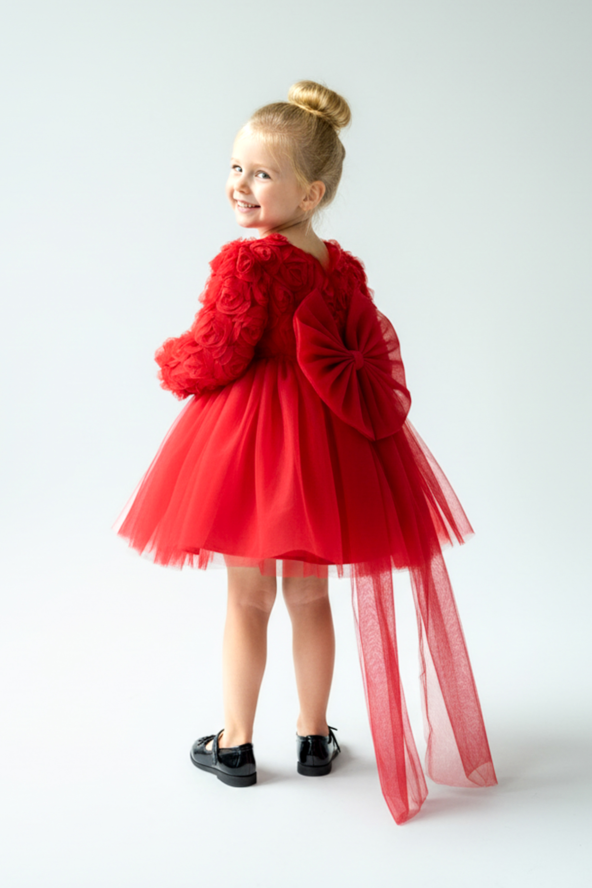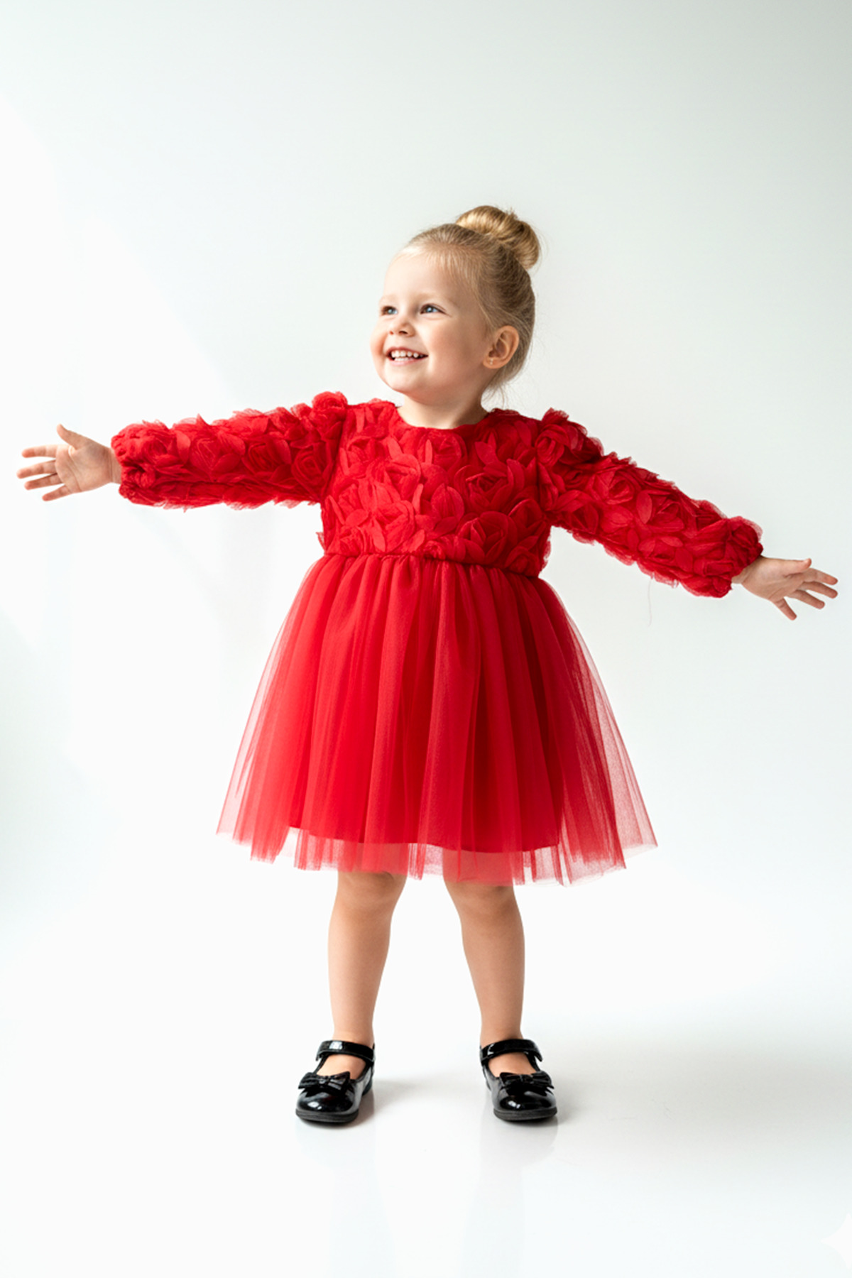 Özellikler tül Detaylar: Elbisenin ön kısmında ve kollarda bulunan tül detaylar, zarafet ve incelik katarken, küçük prensesinizin görünümünü daha etkileyici hale getirir.